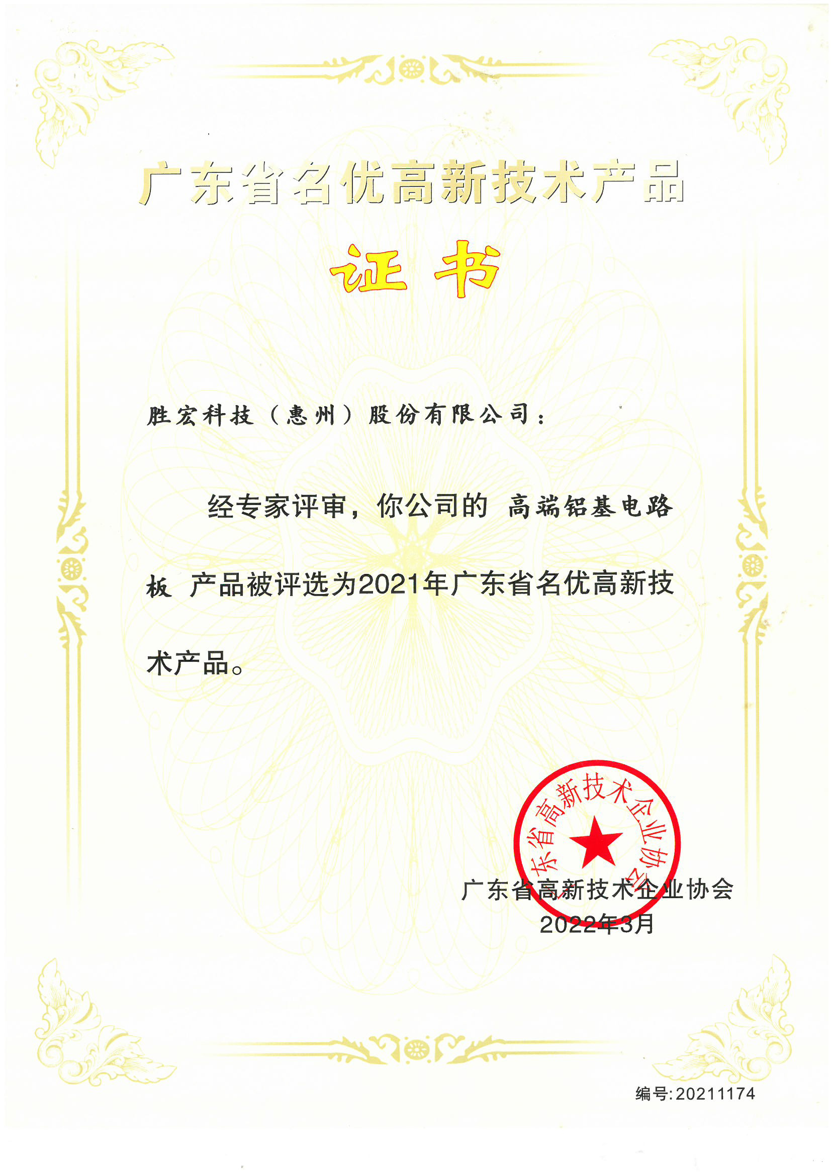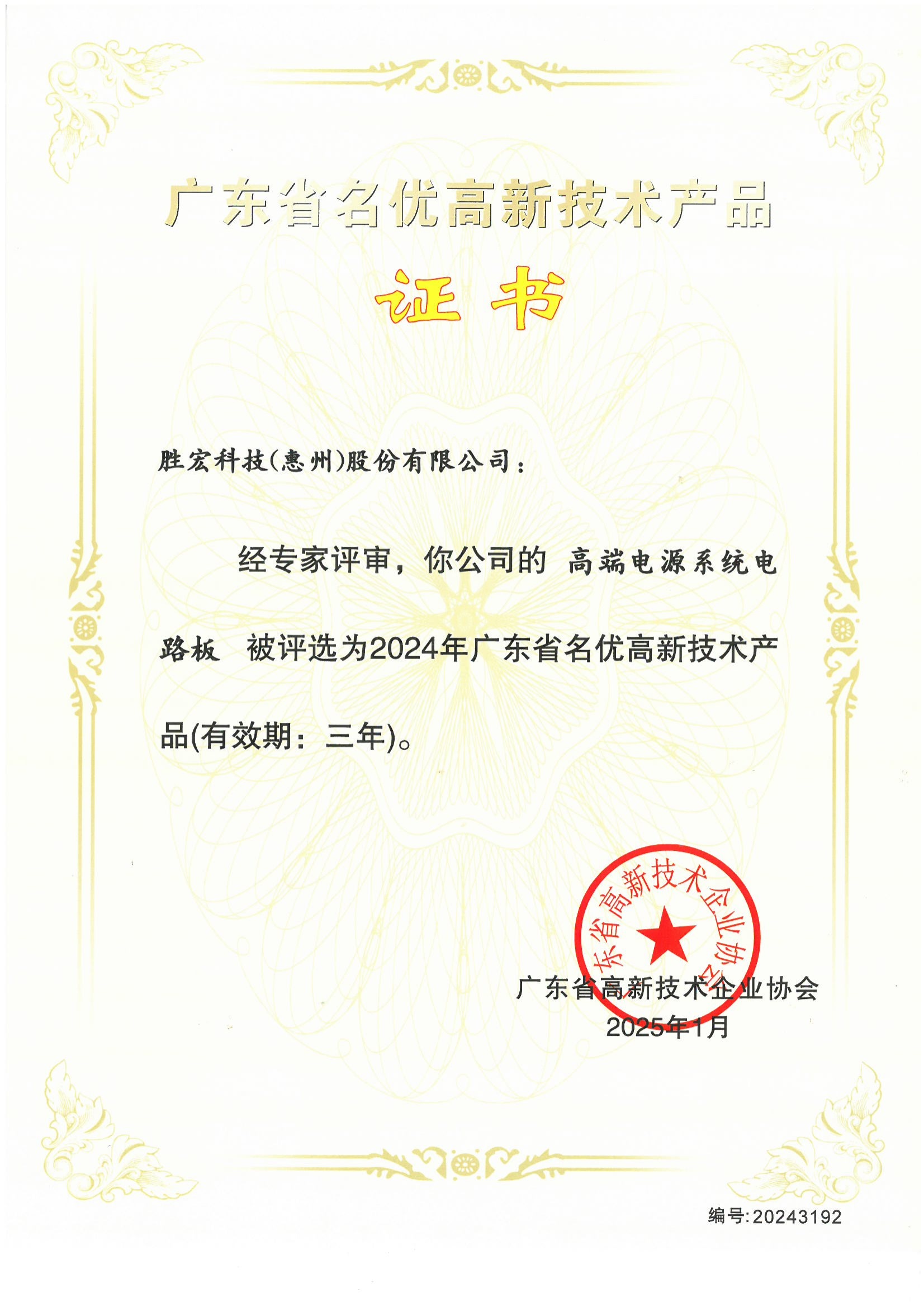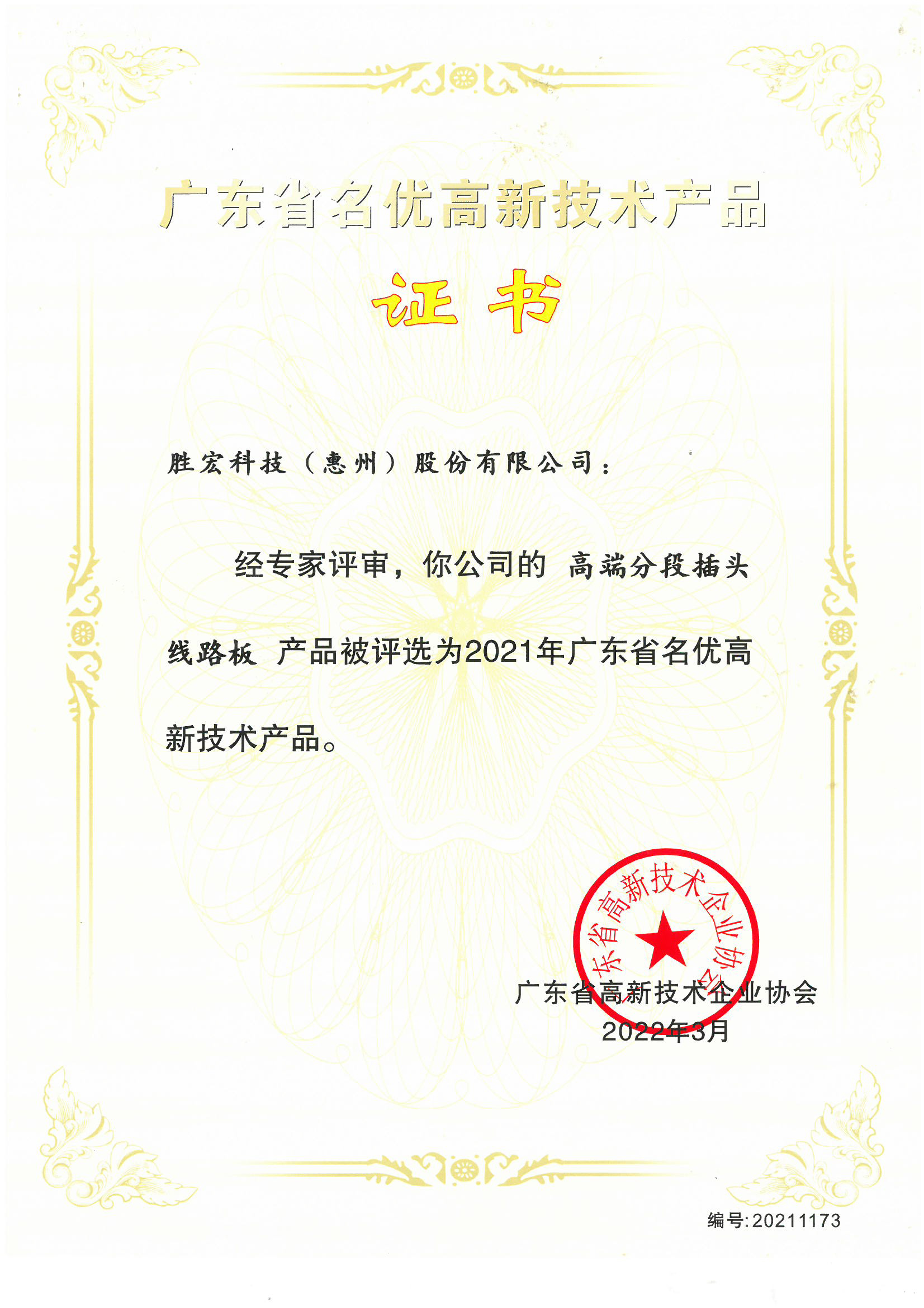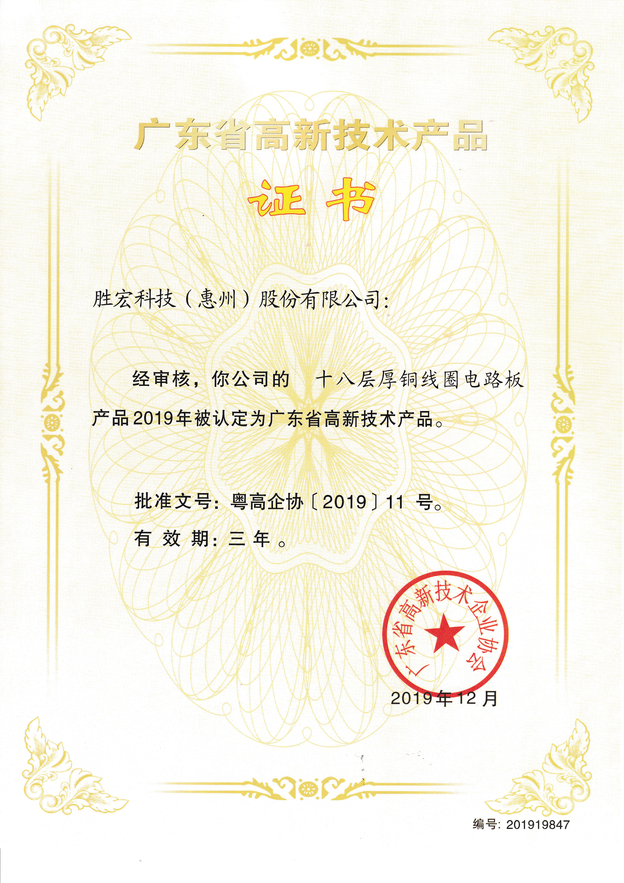 “高頻HDI埋嵌銅塊電路板”名優高新技術產品證書
